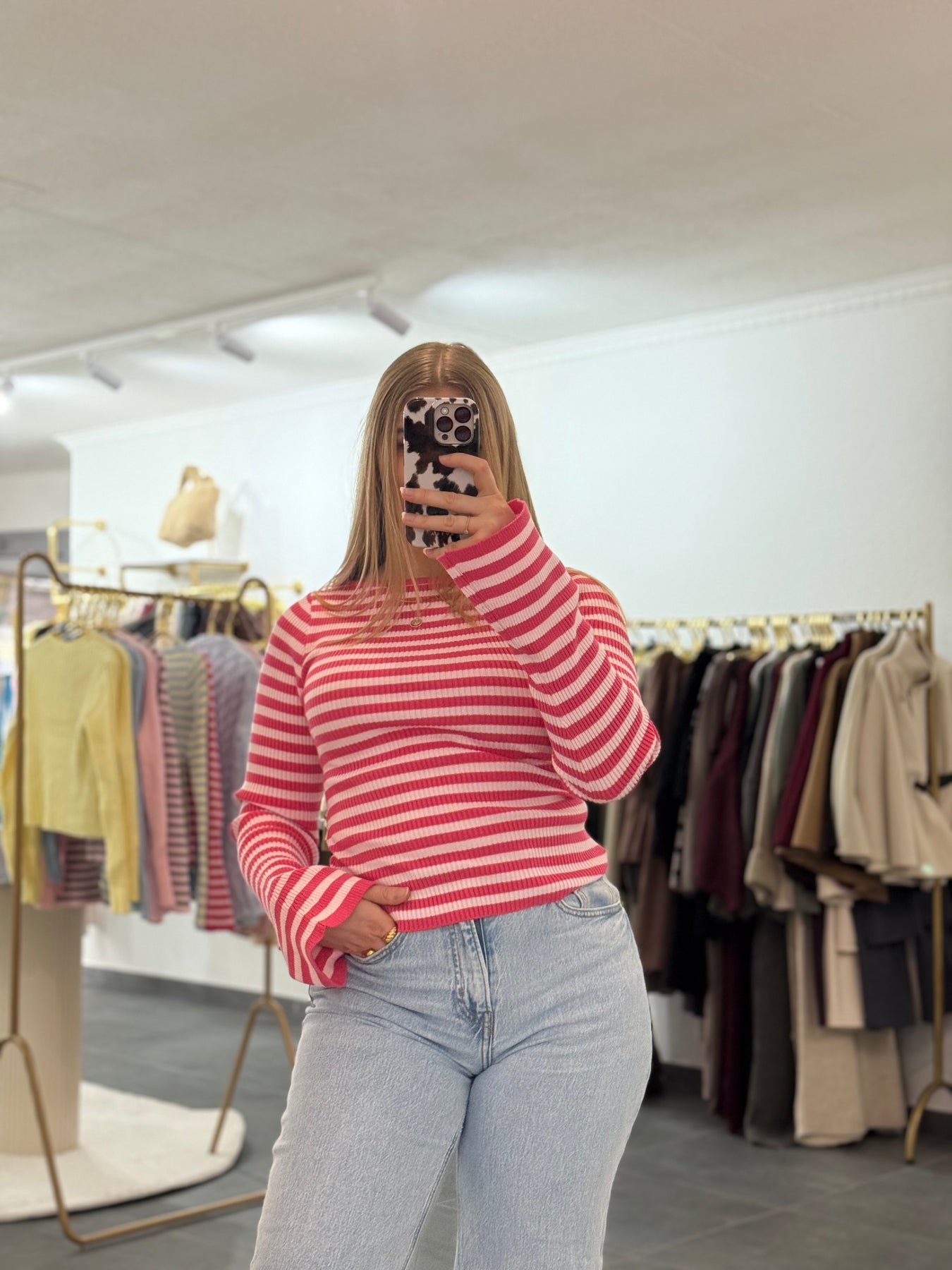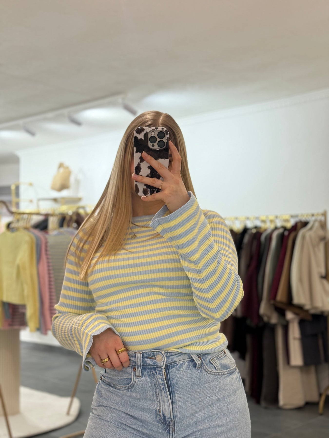 Longtop mit Trompetenärmeln, Material: 50% Viscose, 30% Polyamid, 20% Polyester, das Model ist 1,60 cm groß und trägt Größe S-M