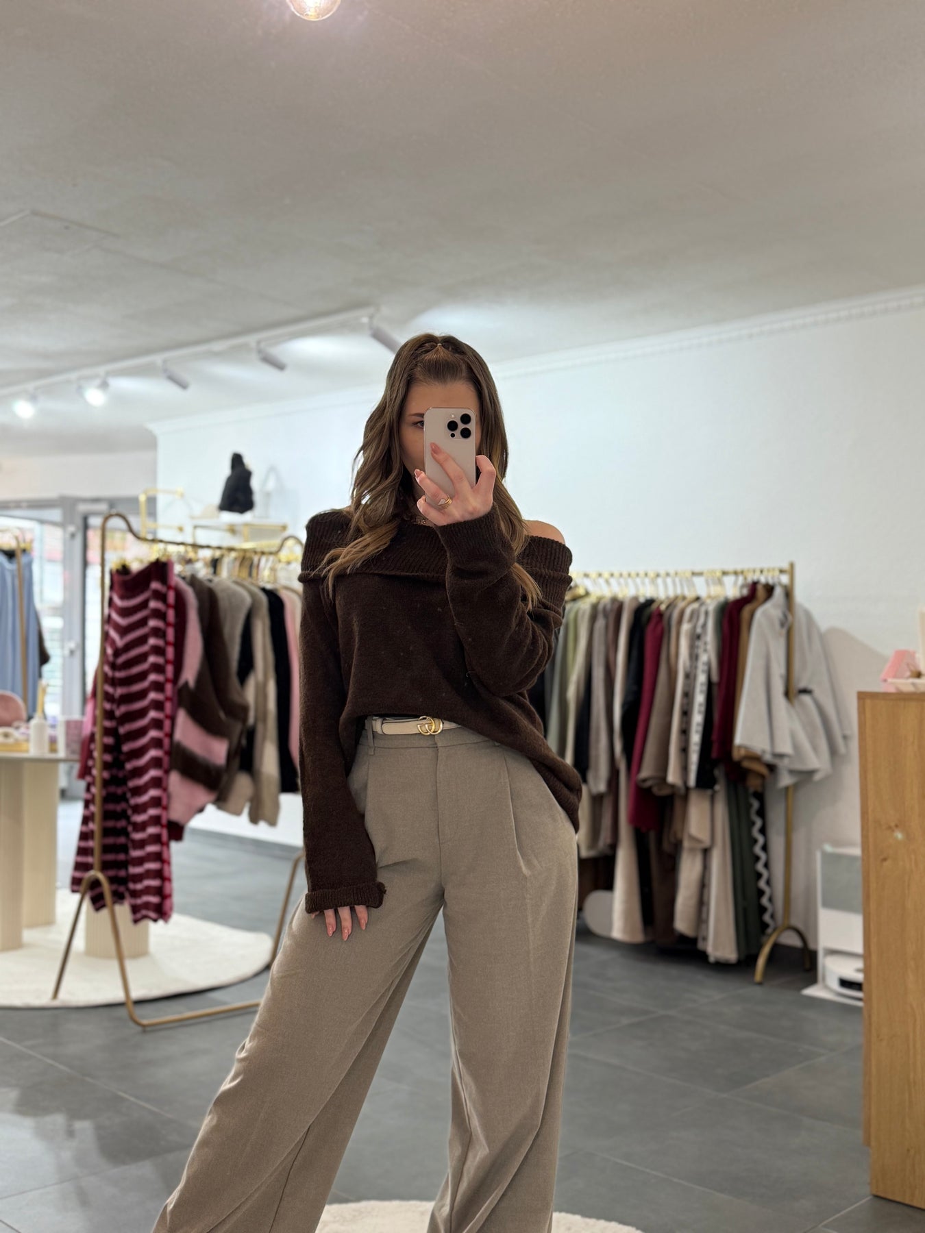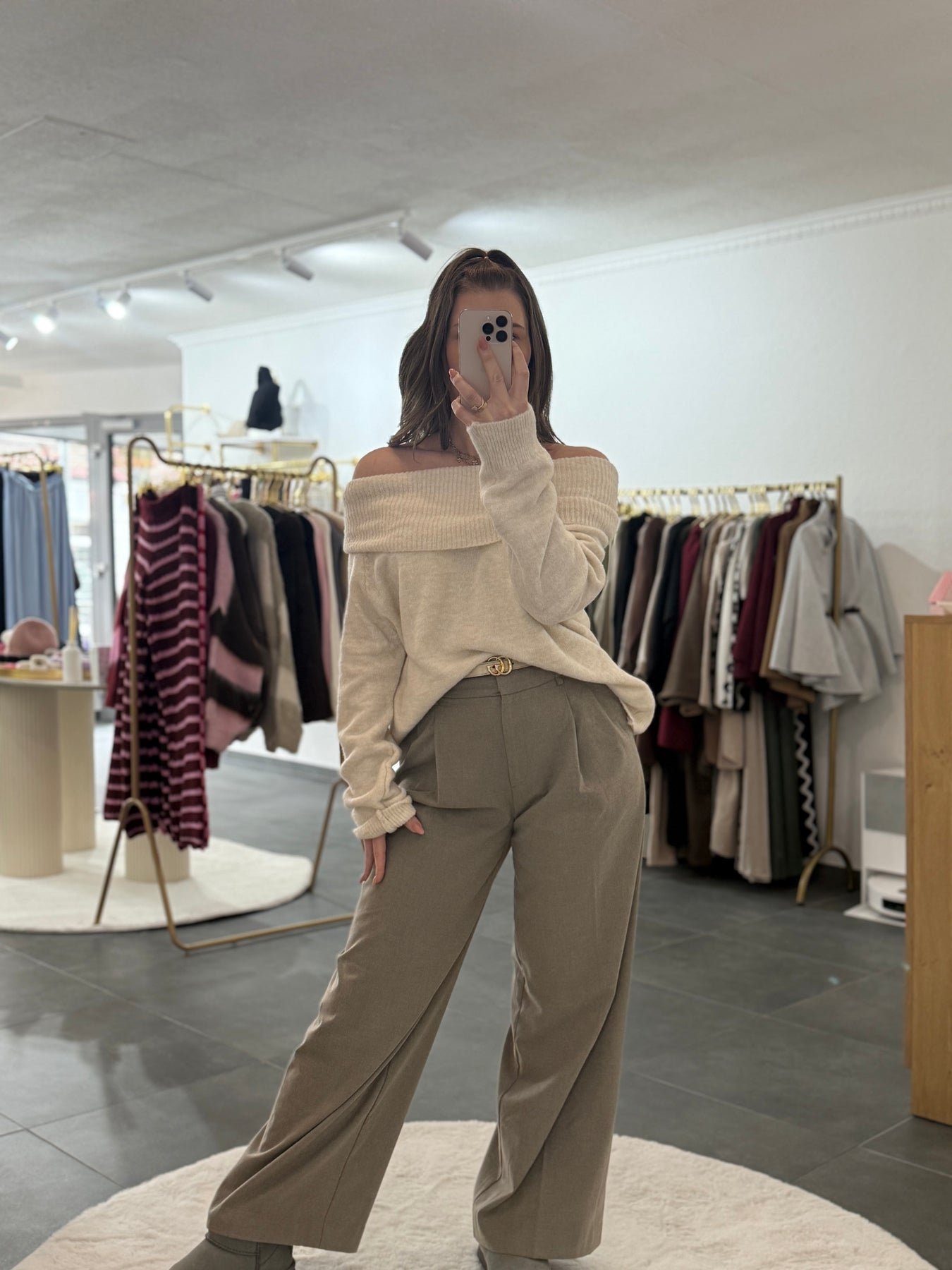 Off shoulder Pullover, Material: 57% Acryl, 29% Polyamid, 7% Wolle, 7% Viscose, Model ist 1,65 cm groß, Onesize