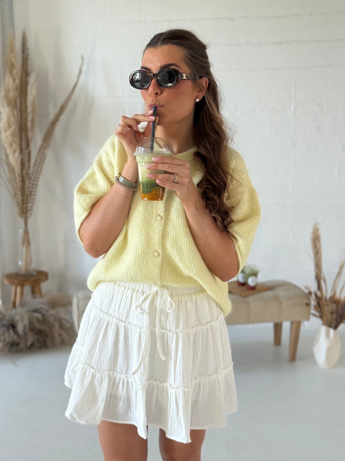 Kurzärmeliger Cardigan, super weich (kein Kratzen), mit Knopfleiste, Material: 8% Wolle, 42% Polyamide, 50% Viscose