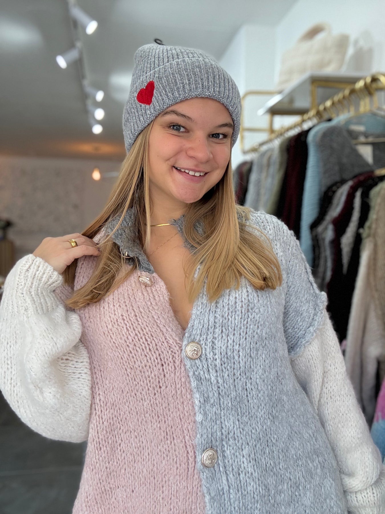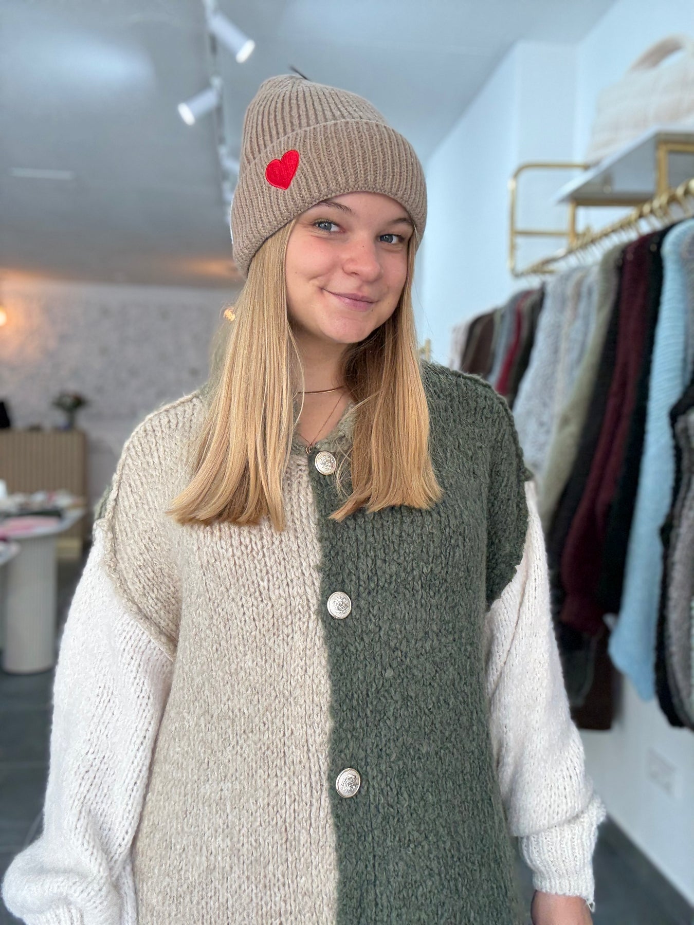 Wunderschöne Mütze mit roter Herzstickerei, Material: 80% Viscose, 20% Wolle