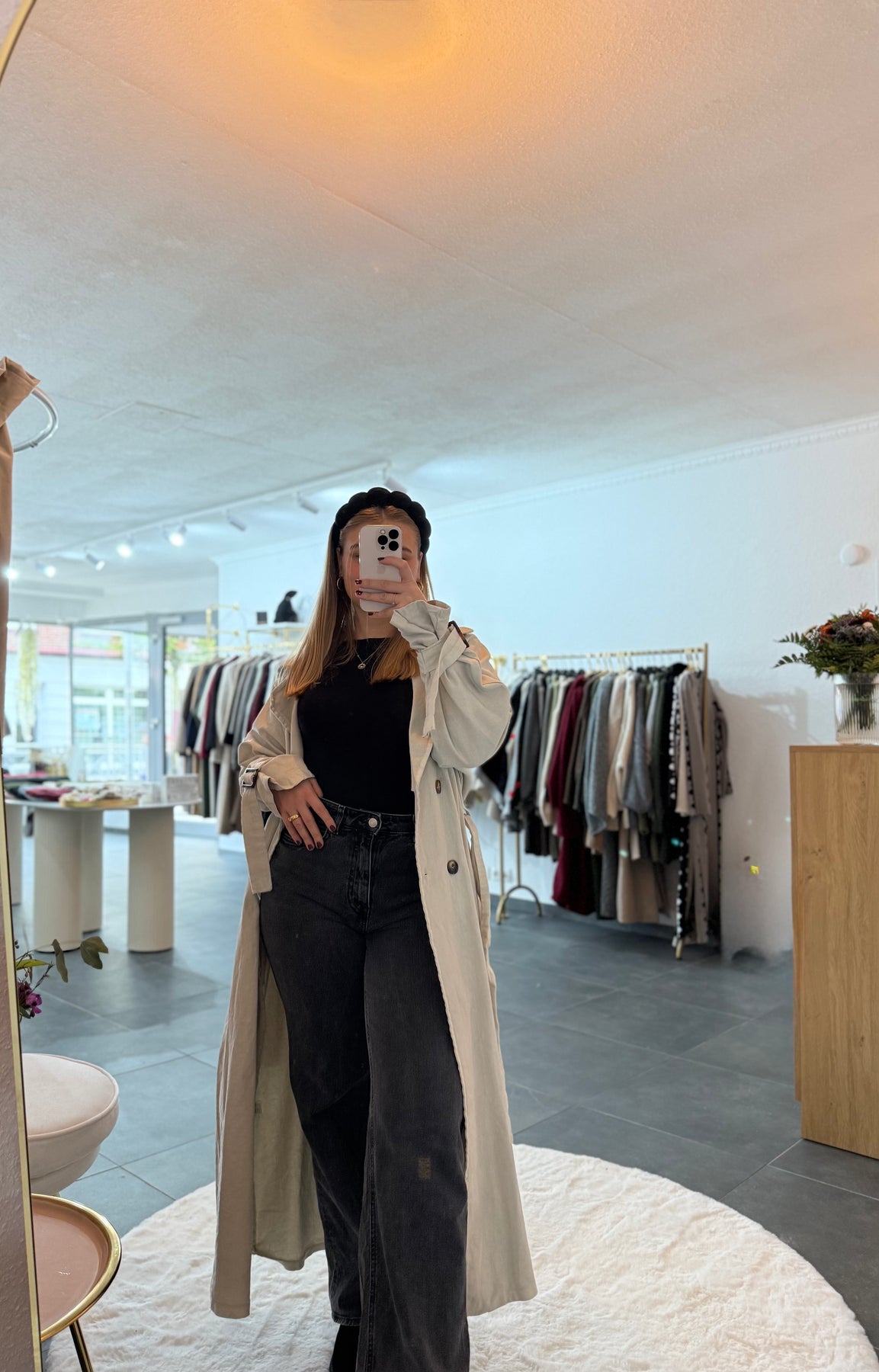 stylischer Trenchcoat in Jeans, mit Knöpfen und Gürtel, Material: Jeans 100% Baumwolle, Made in Italy 🇮🇹, das Model ist 1,60 cm groß