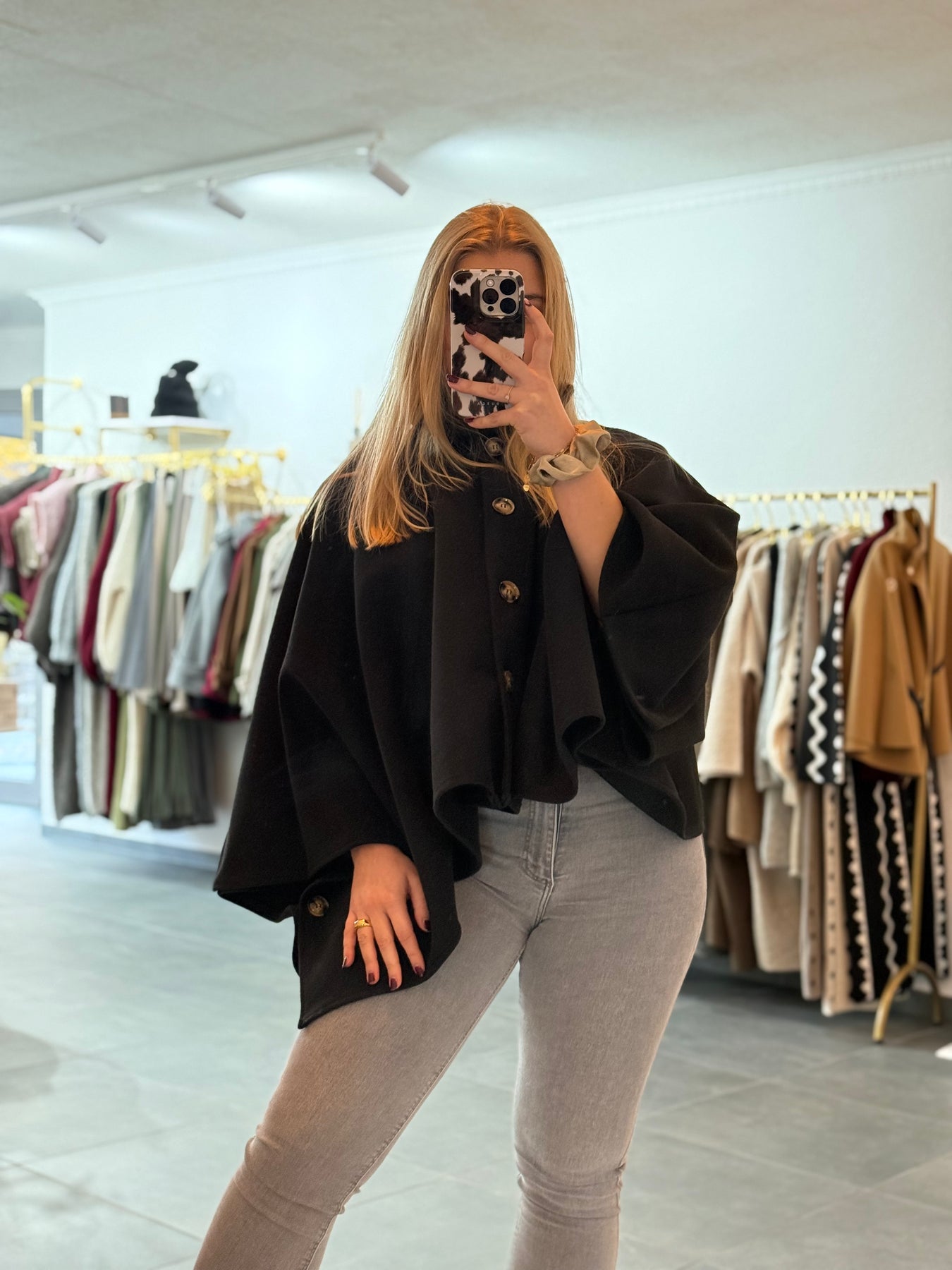 Übergroßer, asymmetrischer Schnitt, Fledermausärmel, Material: 90% Polyester, 10% Viscose, Made in Italy 🇮🇹, das Model (1) ist 1,75 cm groß, das Model (2) ist 1,60 cm groß