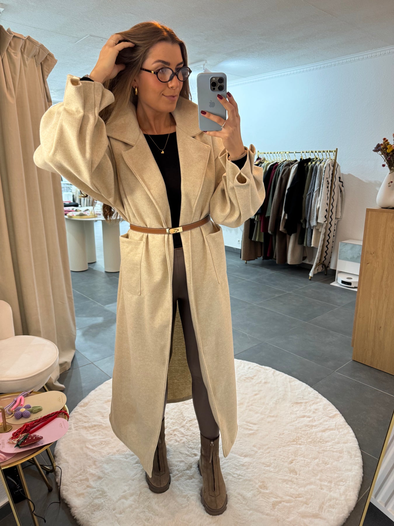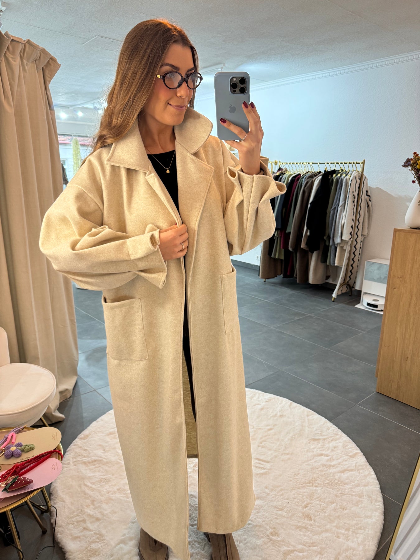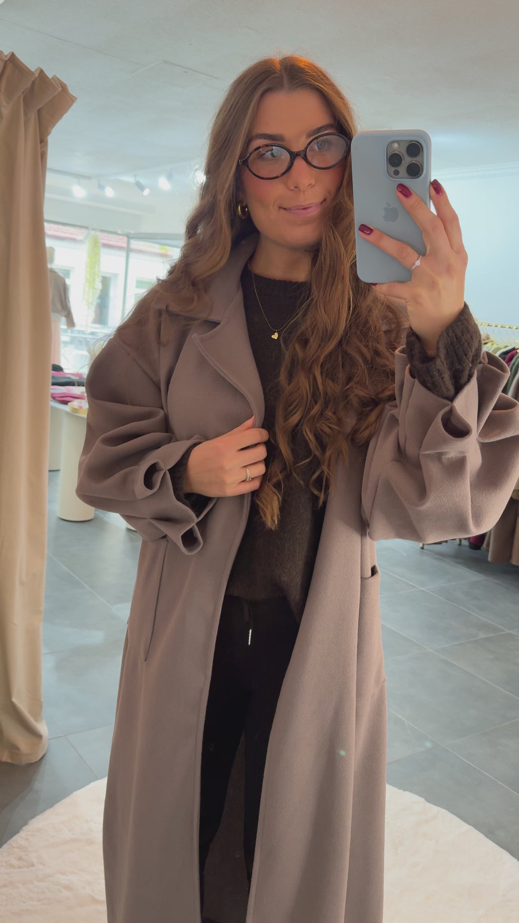 Traumhafter, langer Mantel, mit Raffungen am Ärmel, Material: 100% Polyester, das Model ist 1,75 cm groß, Made in Italy 🇮🇹