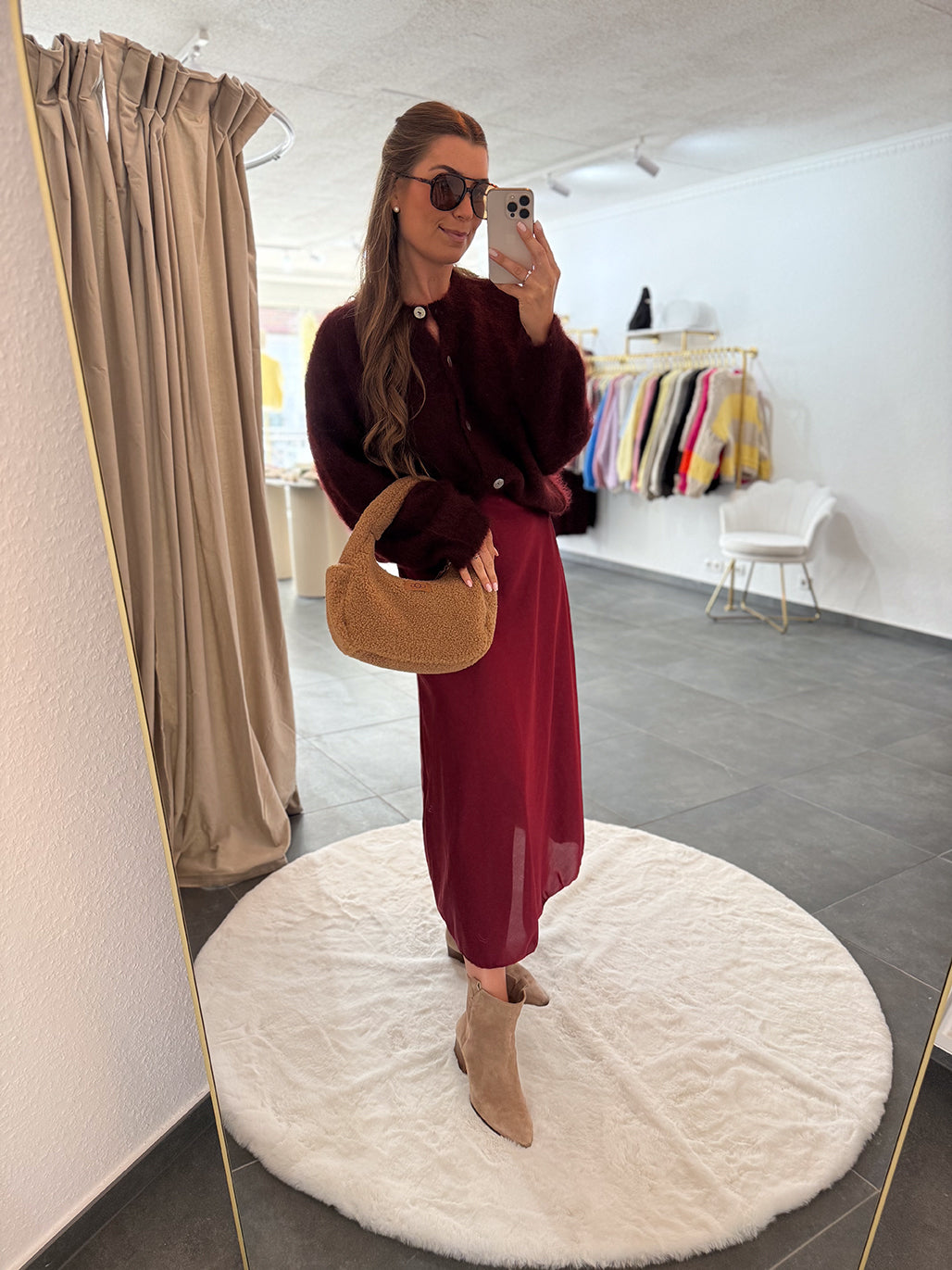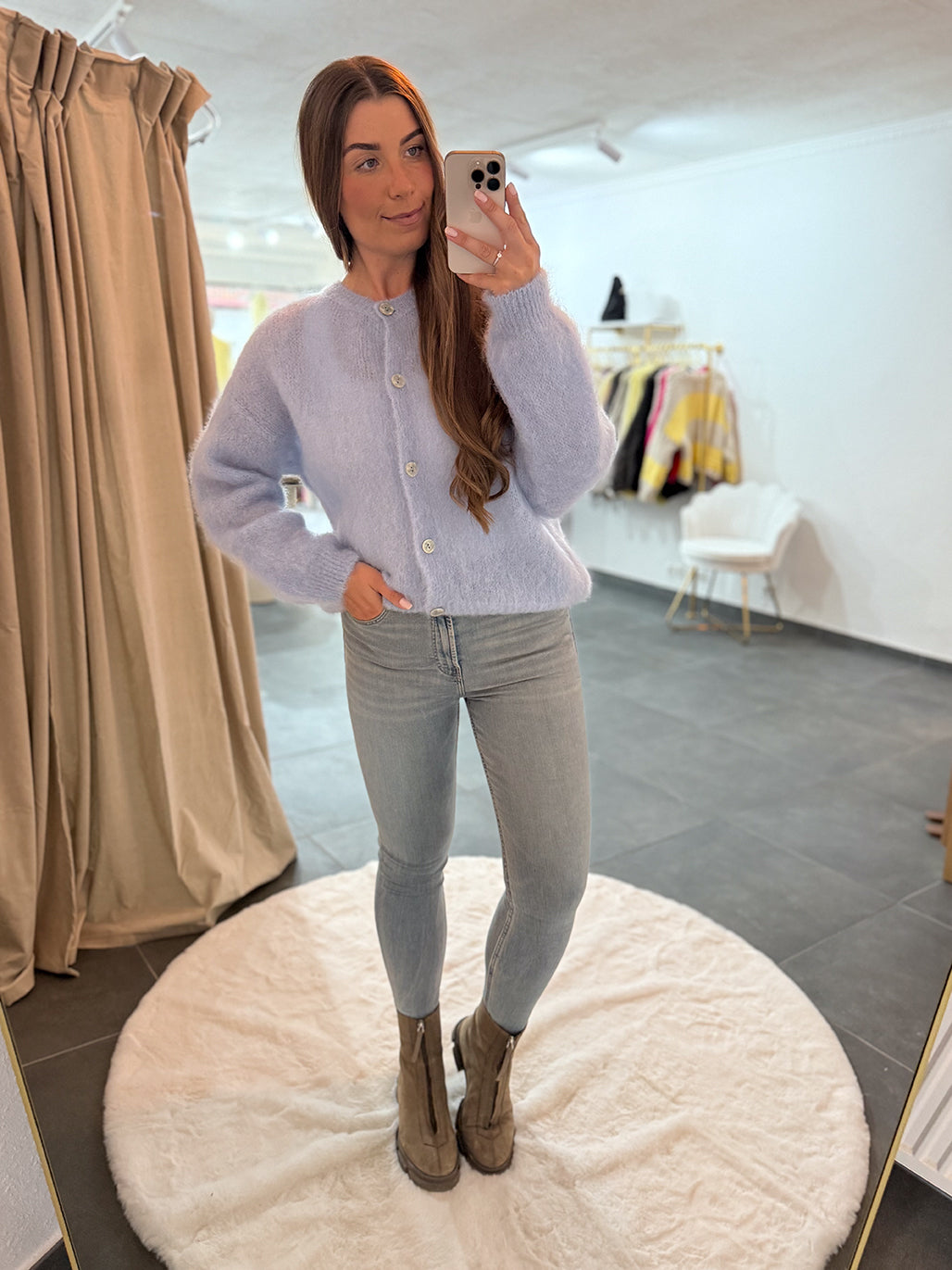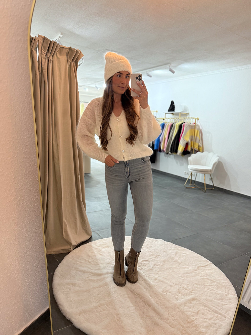 Super kuschelige Strickjacke aus Mohairmix, super leichtes und angenehmes Tragegefühl, 5 Knöpfe, länge: 65 cm, Material: 80 Mohair, 18% Polyamid, 2 % Elasthan, das Model (1) ist 1,65 cm groß, das Model (2) ist 1,75 cm groß, Model (3) ist 1,60 cm groß